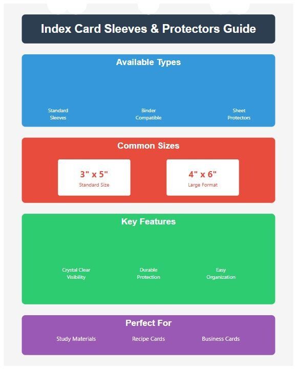 For those seeking comprehensive organization systems, our index card binder sleeves integrate seamlessly with standard three-ring binders. These 3×5 index card sleeves 3 ring binder compatible options transform any standard binder into a professional-grade card organization system. Each index card holder clear sleeve is designed for frequent use while maintaining its protective properties.