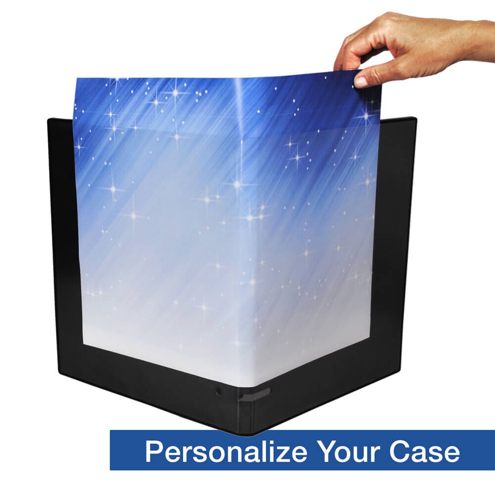 Available in black, clear, and white, it features a clear overlay that allows for customizable covers and spine labels. While traditional 1/2 inch ring binder options can be overwhelming for smaller projects, this sleek organizer provides just the right capacity for reports, presentations, and daily paperwork.