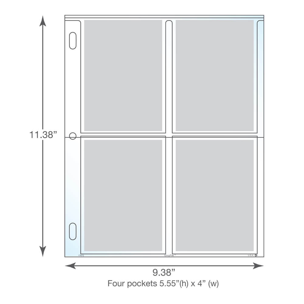 4 Pocket Sheet Protector For Photos, Postcards or Tarot Cards, Pack of 25