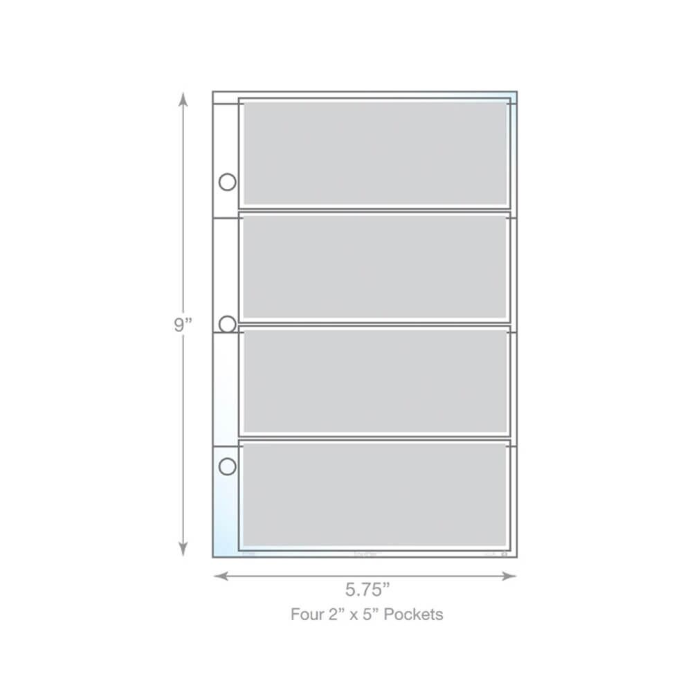 - 20 pages per pack – with 4 pockets per page for 80 total pockets. Pockets hold up to 2.14″ x 5.25″ inserts