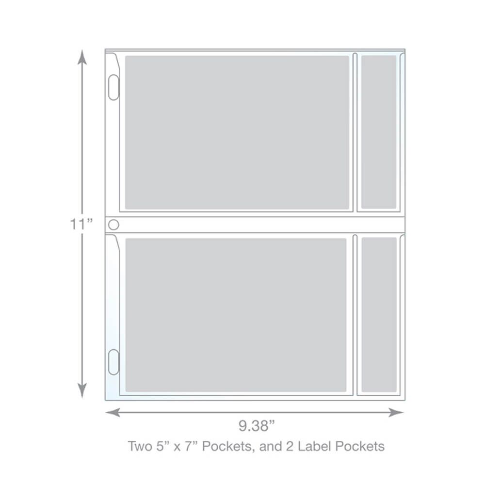• Protect and organize up to two, 5 x 7 inch photos and title cards per sheet