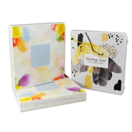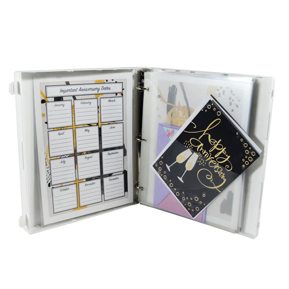 | Contents: | Printed content sheets to help organize Greeting Card events, 10 page protectors, 10 clear double pocketed divider tabs to hold cards. |