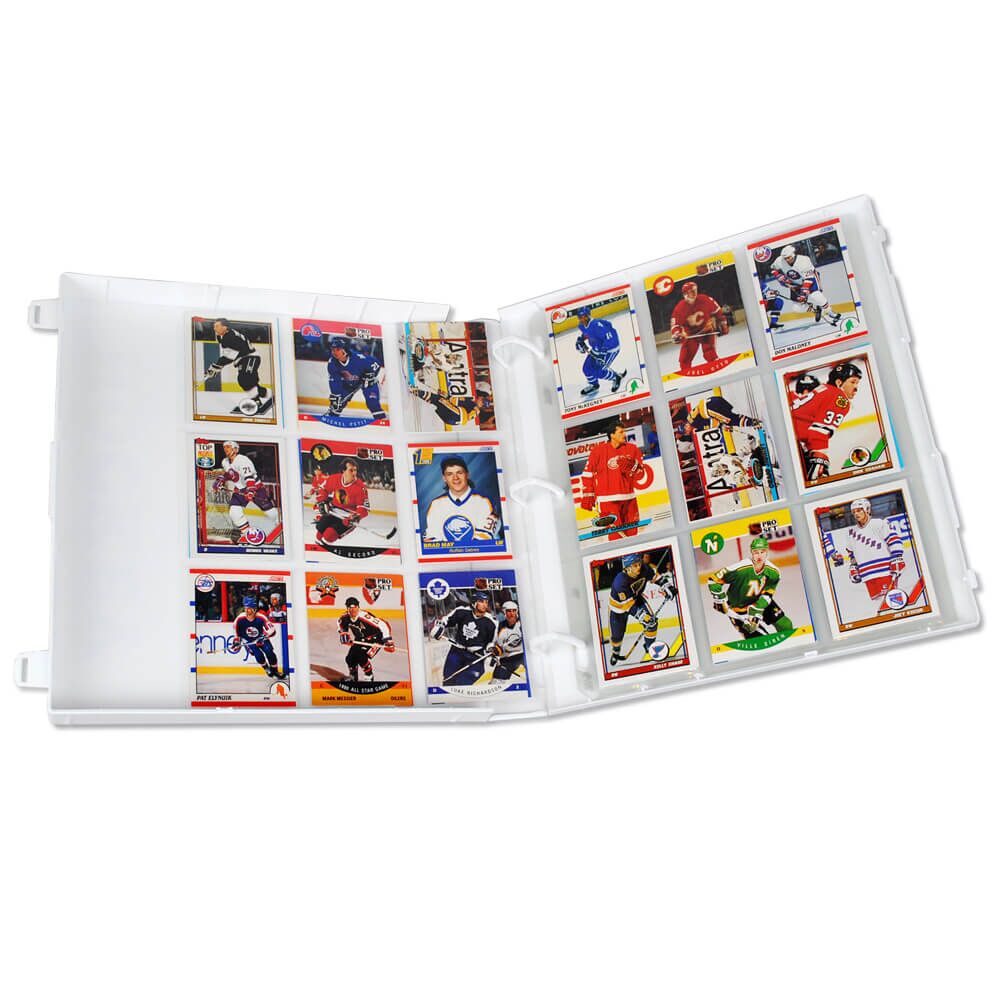 Keep your collection organized and protected with the UniKeep Hockey Card binder kit. This unique case-style binder snaps securely closed so your cards don’t fall out. It also includes 10 EnvyPak brand card sheet protectors. These included sheets will store up to 180 cards in acid-free pages. Additional pages can be used to even more capacity in your case.