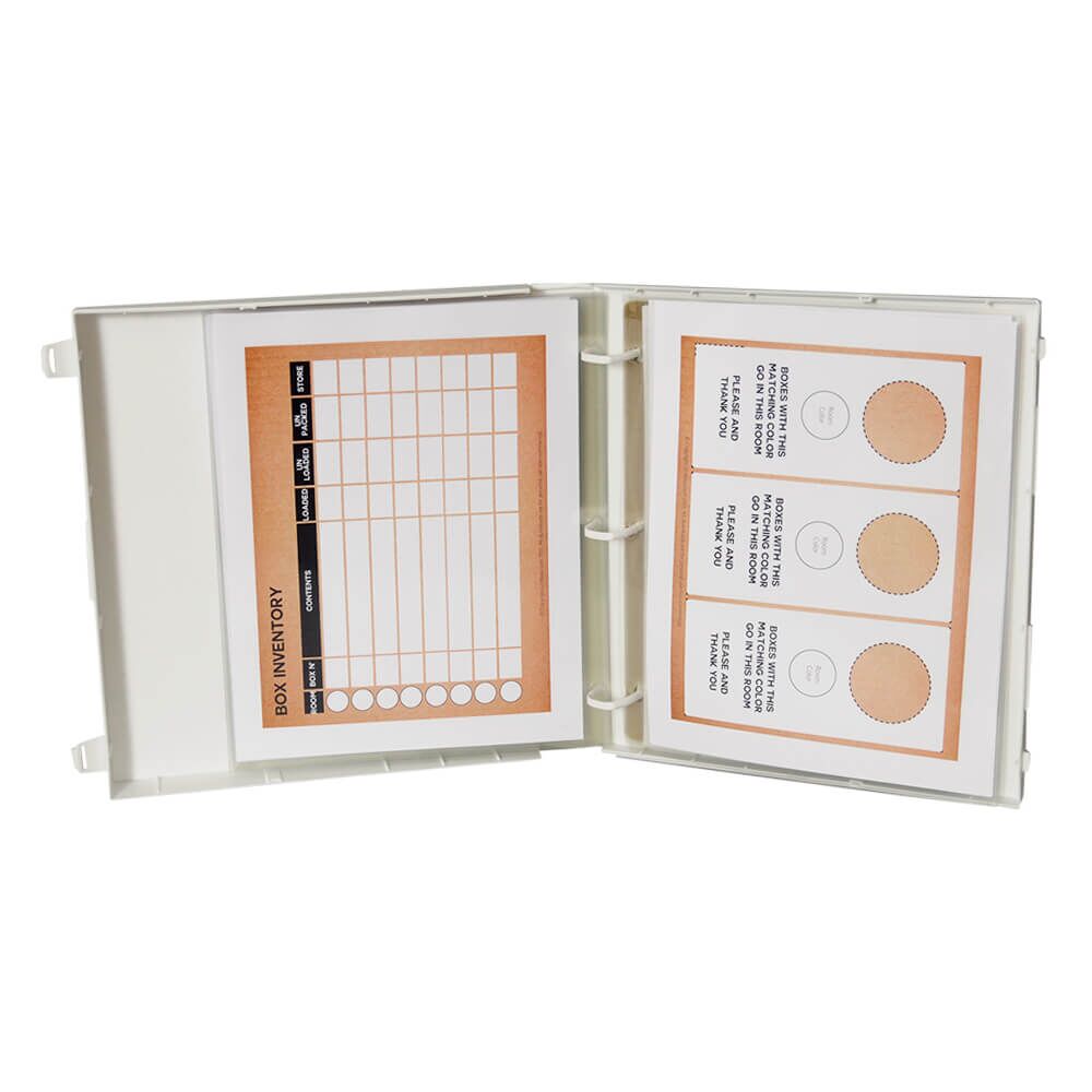 Our Moving Guide binder is durable and includes 10 page protectors and 5 clear pockets to guard your important documents during the move. Our snap-locking exterior and 5 divider tabs keep all of your papers in the order you left them eliminating any confusion or misplaced content between your old and new home. Our content pages even include labels for your boxes that make transporting household items and personal belongings functional and safe.