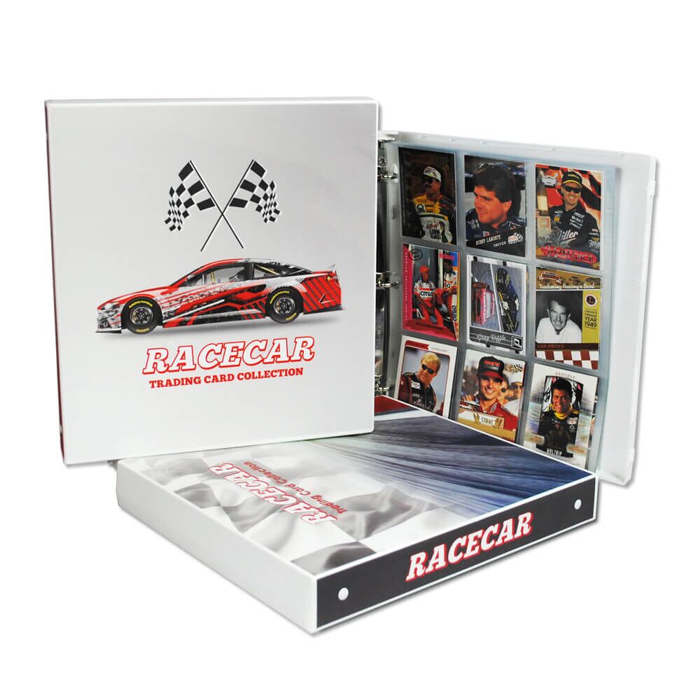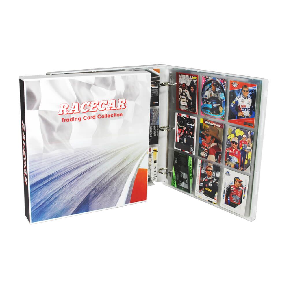 The Nascar Themed Trading Card Album is the best way to keep your Nascar cards in pristine condition. The Nascar Themed Trading Card Binder comes with 20 acid-free archival quality 9-pocket trading card pages, allowing you to store and protect up to 360 racing cards. Additional pages can be added for larger capacity.