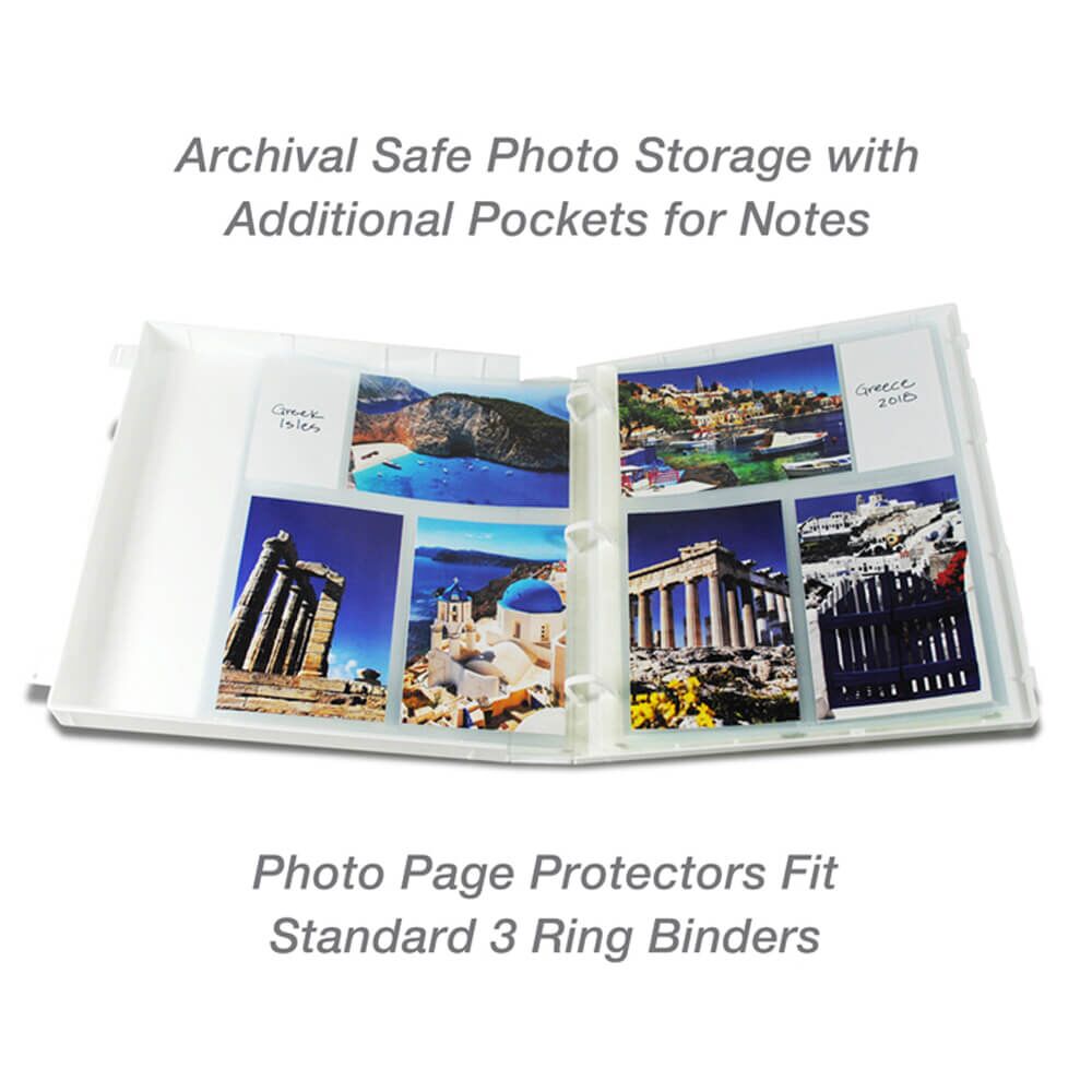 EnvyPak Photo Protector Sheets are crystal clear polypropylene and the best solution to store and protect your precious photographs. Each page has three pockets, which hold up to six 4 x 6 inch photos.