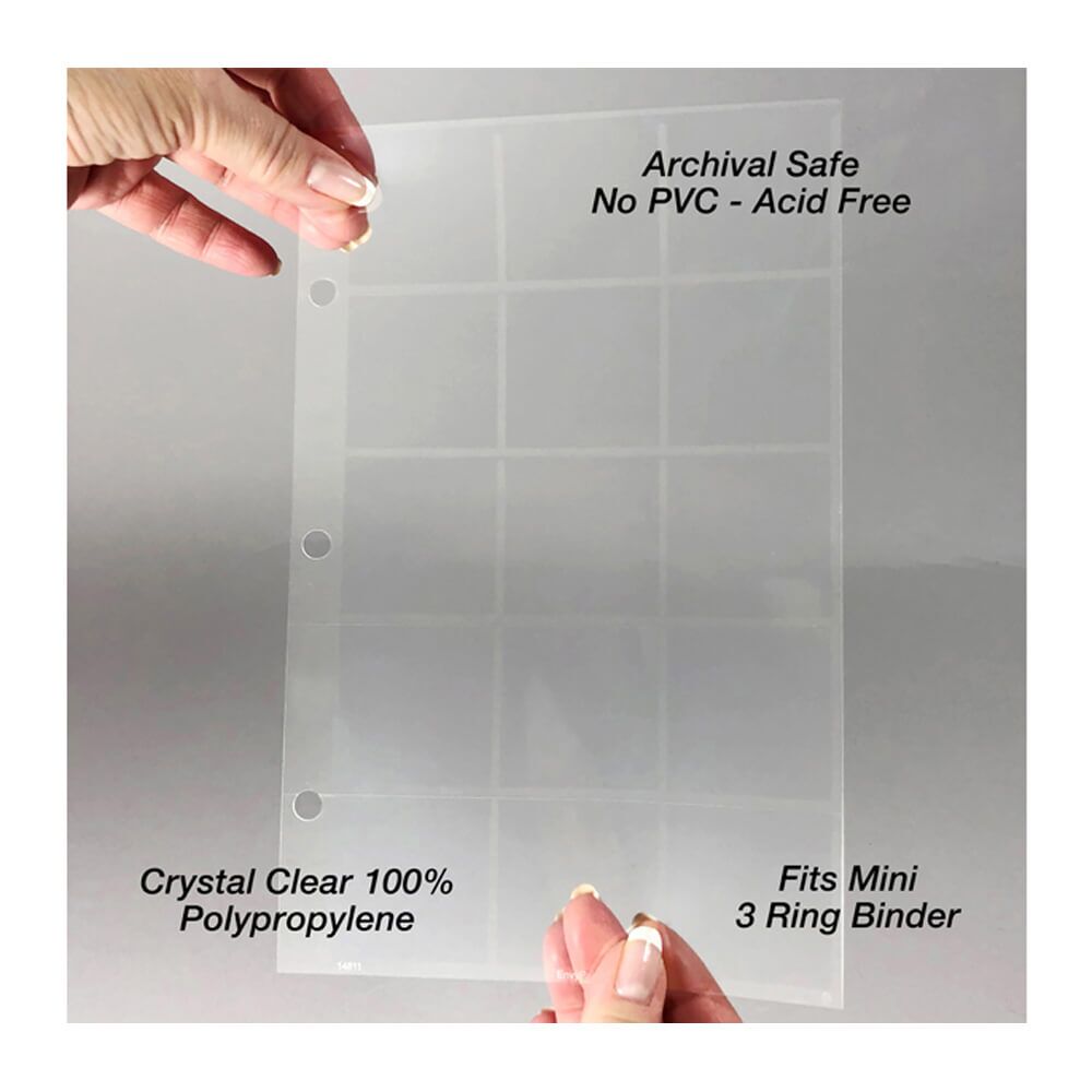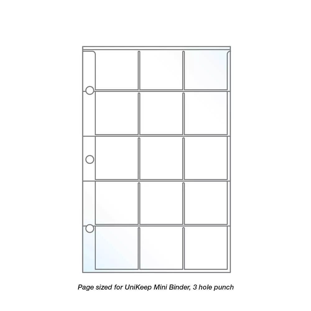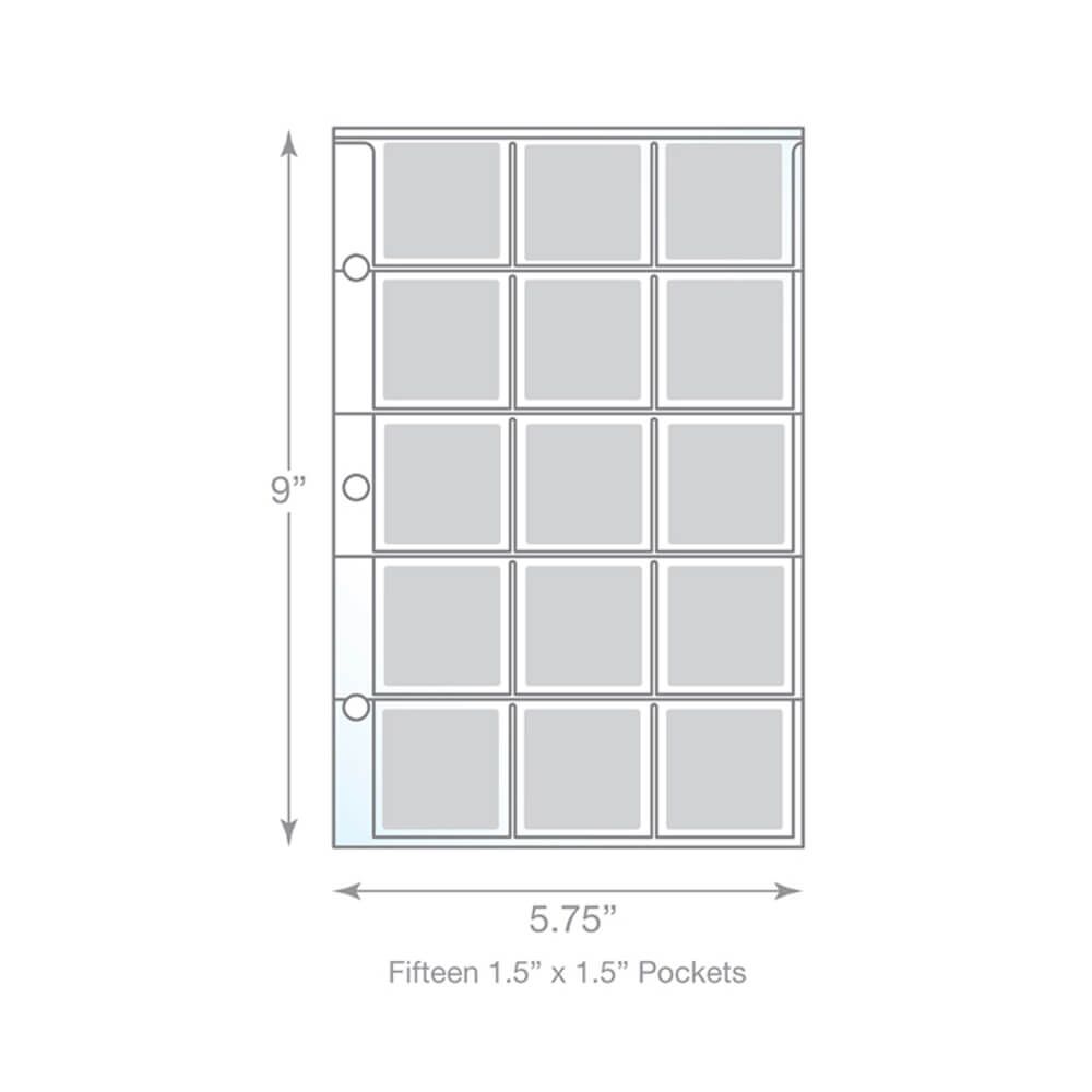 15 Pocket Stamp/Coin Page Protector – Holds 1.5″ x 1.5″ Inserts – 20 Pack – Fits Mini Binder