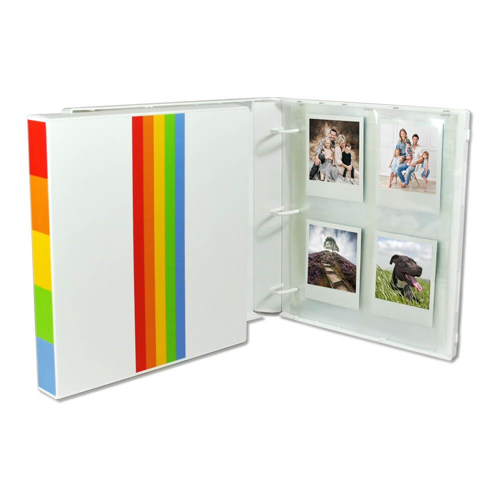 Polaroid Photo Album, includes 25 pages, holds 200 photos and is made from 100% recyclable polypropylene, and is perfect for storing and displaying your Polaroid photos. The high-quality digitally printed design looks great on a coffee table or a shelf. Fully enclosed, it has a stackable case that snaps securely and protects the contents. The durable, archival-safe construction contains snap-locking poly rings that won’t pinch, misalign, or rust.